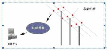 The device is mounted in the line, collected fault signals, and with GPRS (or text) is sent to the monitor center form.