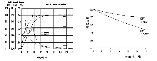 Charging voltage and time graph the residual capacity of the storage time under different temperature and the relationship between the curve